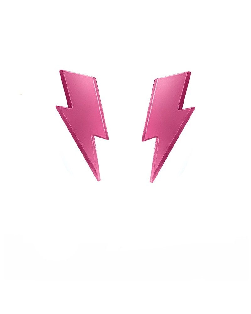 Fuchsia pink acrylic lightning bolt earrings Lightning bolt earrings are on trend and these in fuchsia are perfect for giving a boost of energy to any look. Base of the earring with a pressure-fit steel nut.