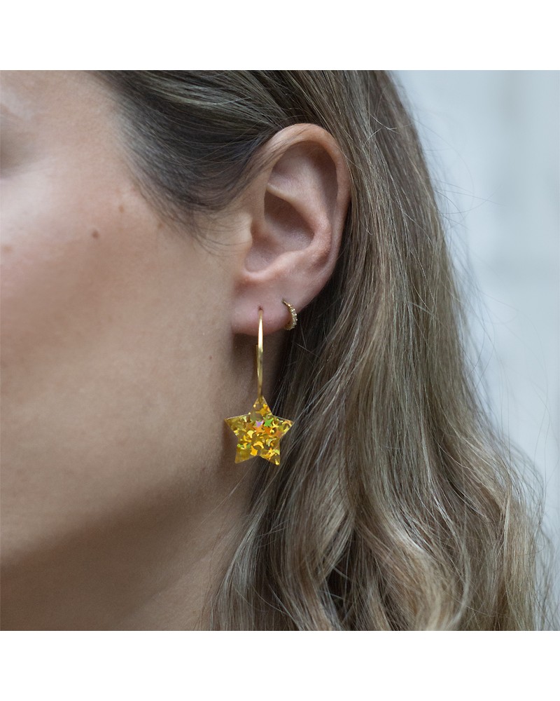 Acrylic lightning bolt earrings Lightning bolt earrings are in trend and these in a deep purple shade are perfect for giving a boost of energy to any look. Base of the earring with a pressure nut in steel.