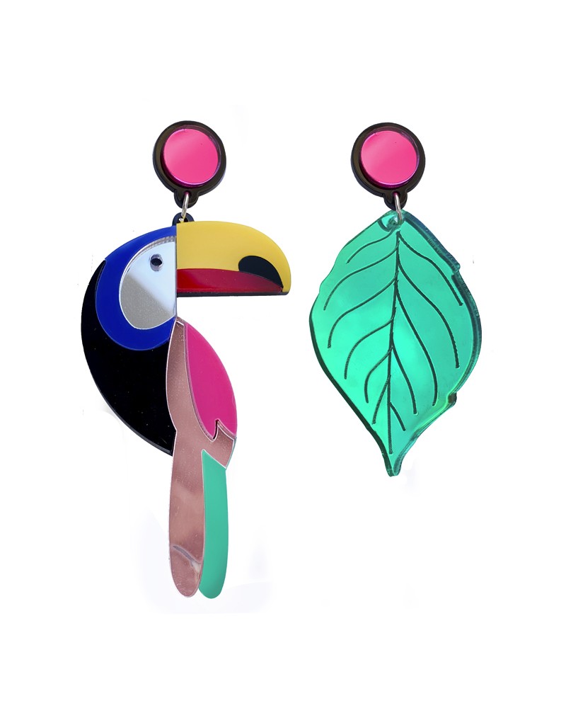 Earring with a steel hoop base and an asymmetrical heart pendant in pink glitter. Available in silver and gold. Sold individually.