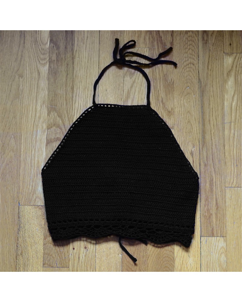 Black handmade crochet top made of 100% cotton. A flattering timeless top with an open back. Crossed lace-up closure to adjust it.