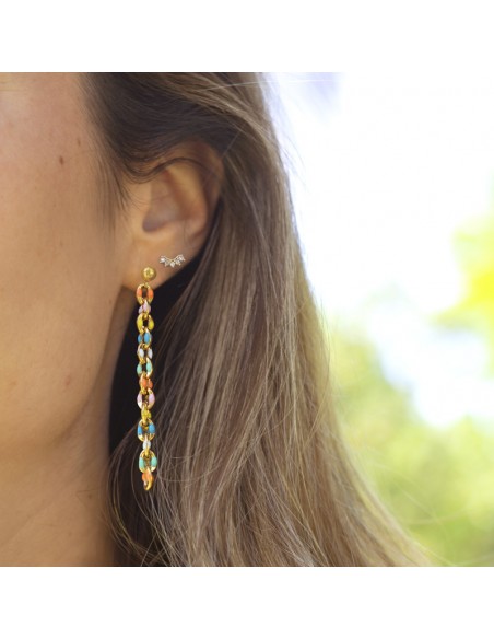 Pendientes largos de eslabones con esmalte de colores de acero bañado en oro.