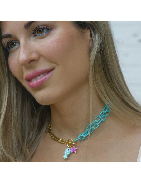 Collar con colgante de pez azul y estrella de mar azul