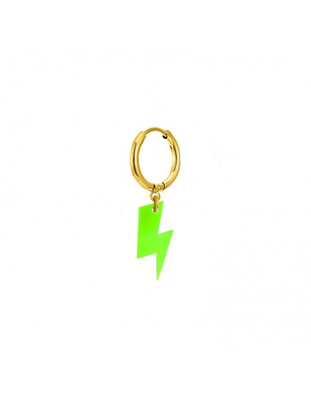 Pendiente con base de arito de acero y colgante de rayo verde lima.