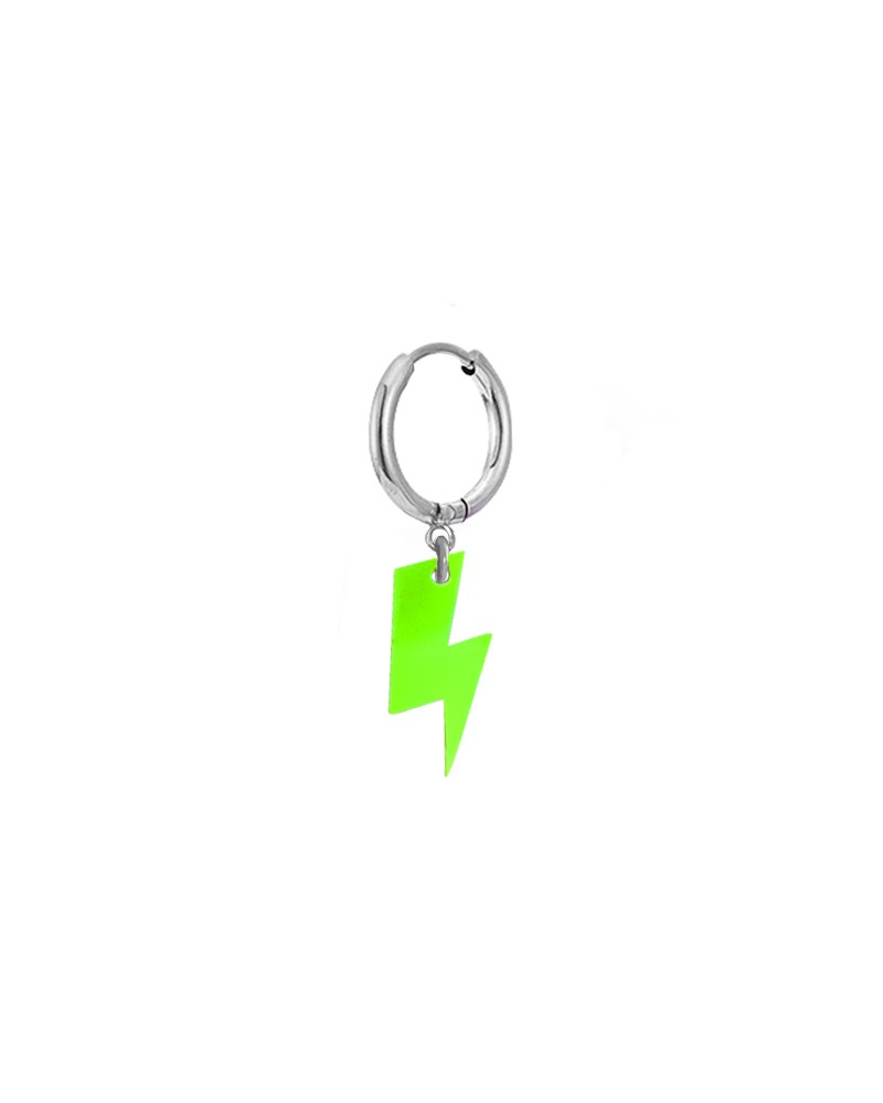 Pendiente con base de arito de acero y colgante de rayo verde lima.