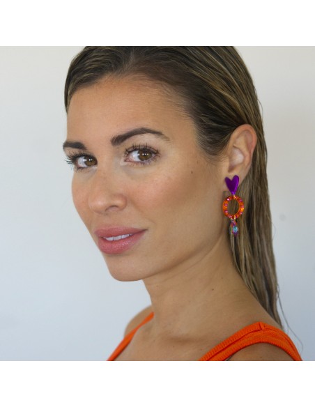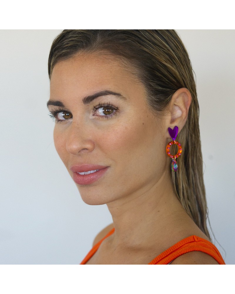 Pendiente con base de arito de acero y colgante de rayo negro con glitter.