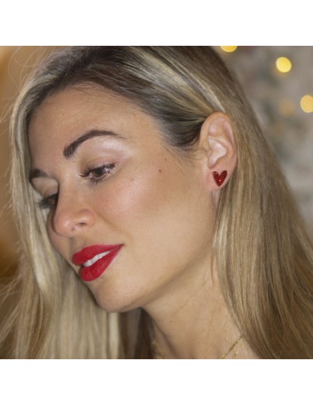 Pendientes de corazón mini dorado espejo y rojo glitter. Unos pendientes minimalistas y discretos pero con mucho encanto.