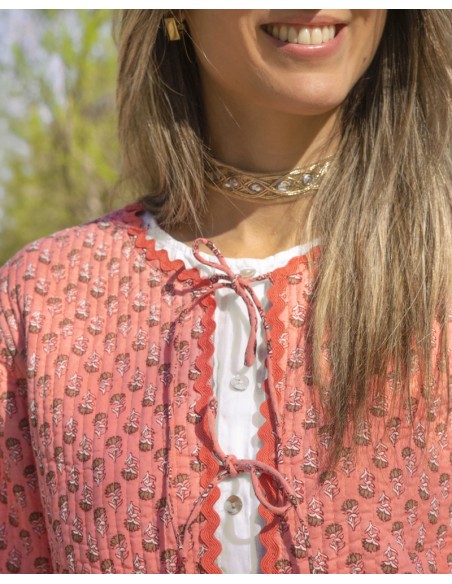 Descubre la elegancia y la comodidad de esta chaqueta acolchada reversible de algodón hecho en India, inspirada su capital, Delhi.